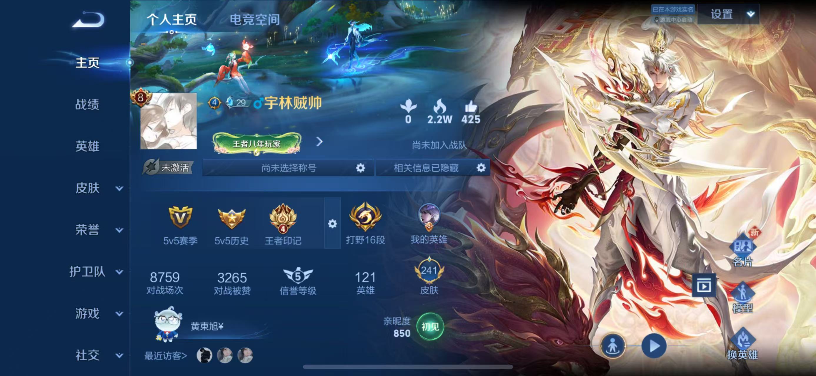 适配系统:苹果 角色名:必须追到她 信誉分:95 账号类型(腾讯):QQ 排位赛:允许 巅峰赛:允许 段位:无双王者 英雄个数:126 皮肤个数:269 是否禁言:否 营地ID:472045265 分销起租时长:2 维权率限制:30 VIP等级:8