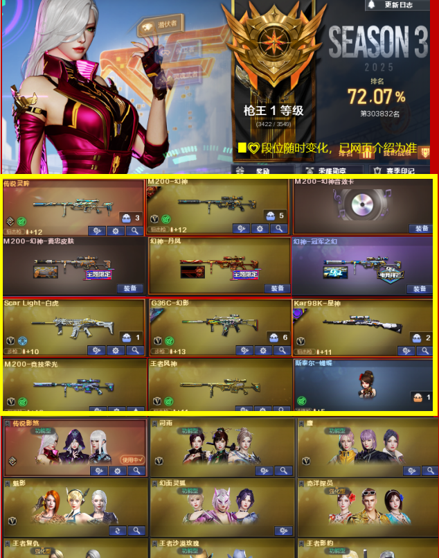 英雄武器数:71 王者武器数:12 枪王排位等级:枪王 账号类型:双全装 到时不下线:1 分销起租时长:2 段位积分:3920 排位赛:允许 VIP等级:VIP4