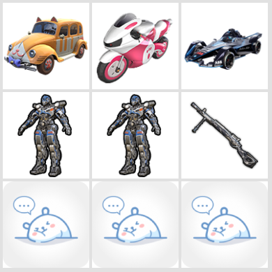 适配系统:安卓 特效枪数量:1 维权率限制:66 账号类型(腾讯):QQ 载具皮肤:3 分销起租时长:1 套装数量:81 粉色时装数:1 枪皮数量:78