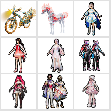X103,2载具,7粉装,2红装,艾丽娅;瑞拉;羊梦糖心;绯穹魔姬;星穹咏叹调;烟云彩露;幻影飞狐;歌者泠鸢;洛天...