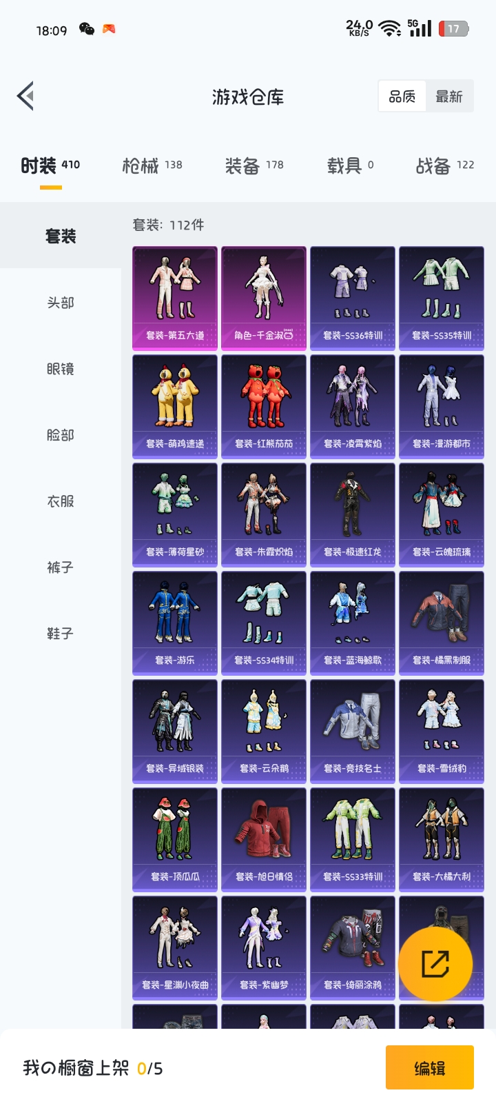 适配系统:安卓 红装数量:0 账号类型(腾讯):微信 分销起租时长:1 载具皮肤:0 粉色时装数:2 套装数量:112 特效枪数量:1 枪皮数量:138