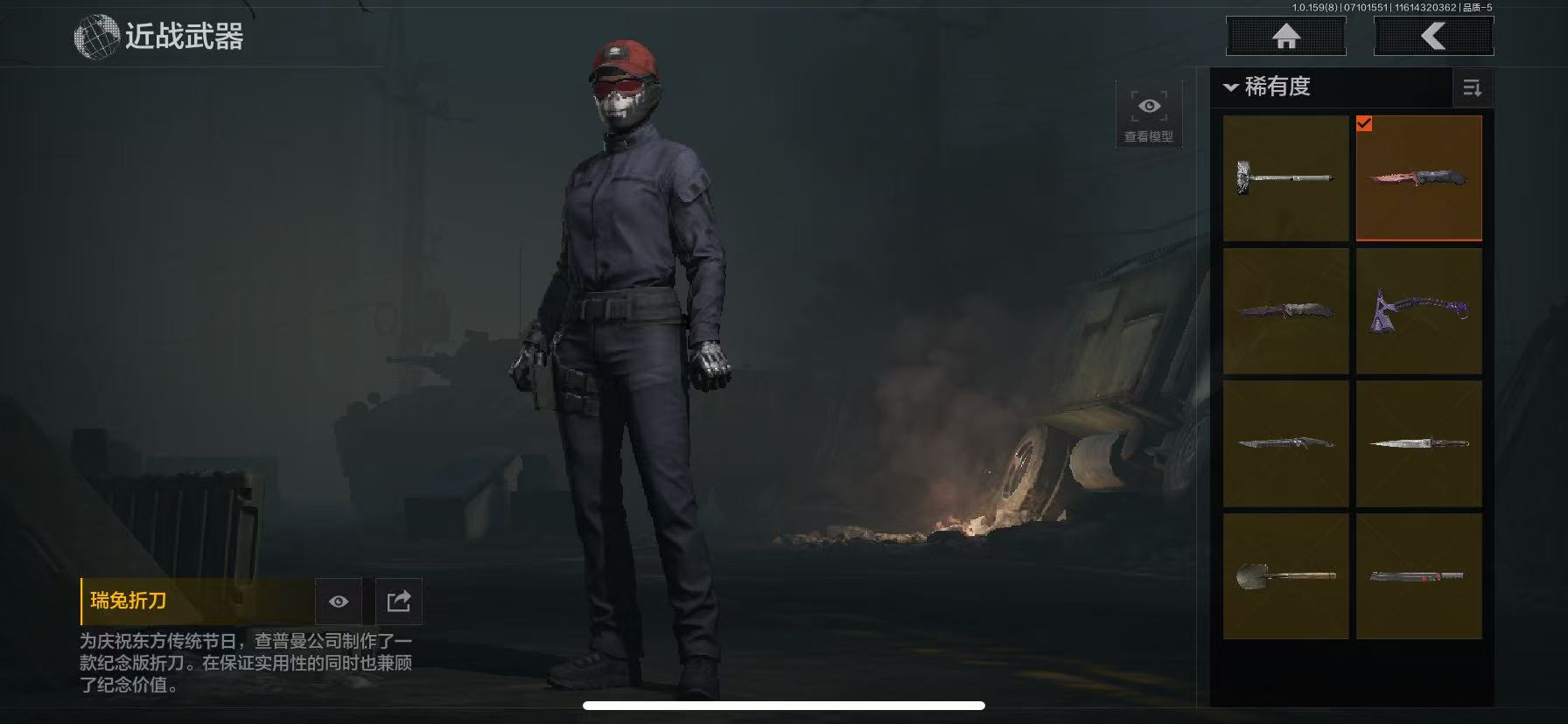 6刀4皮1手套3金枪 瑞兔折刀,野战折刀,冰海战斧,鲨鱼刀,旧日主宰,苍白之触,银月AN94