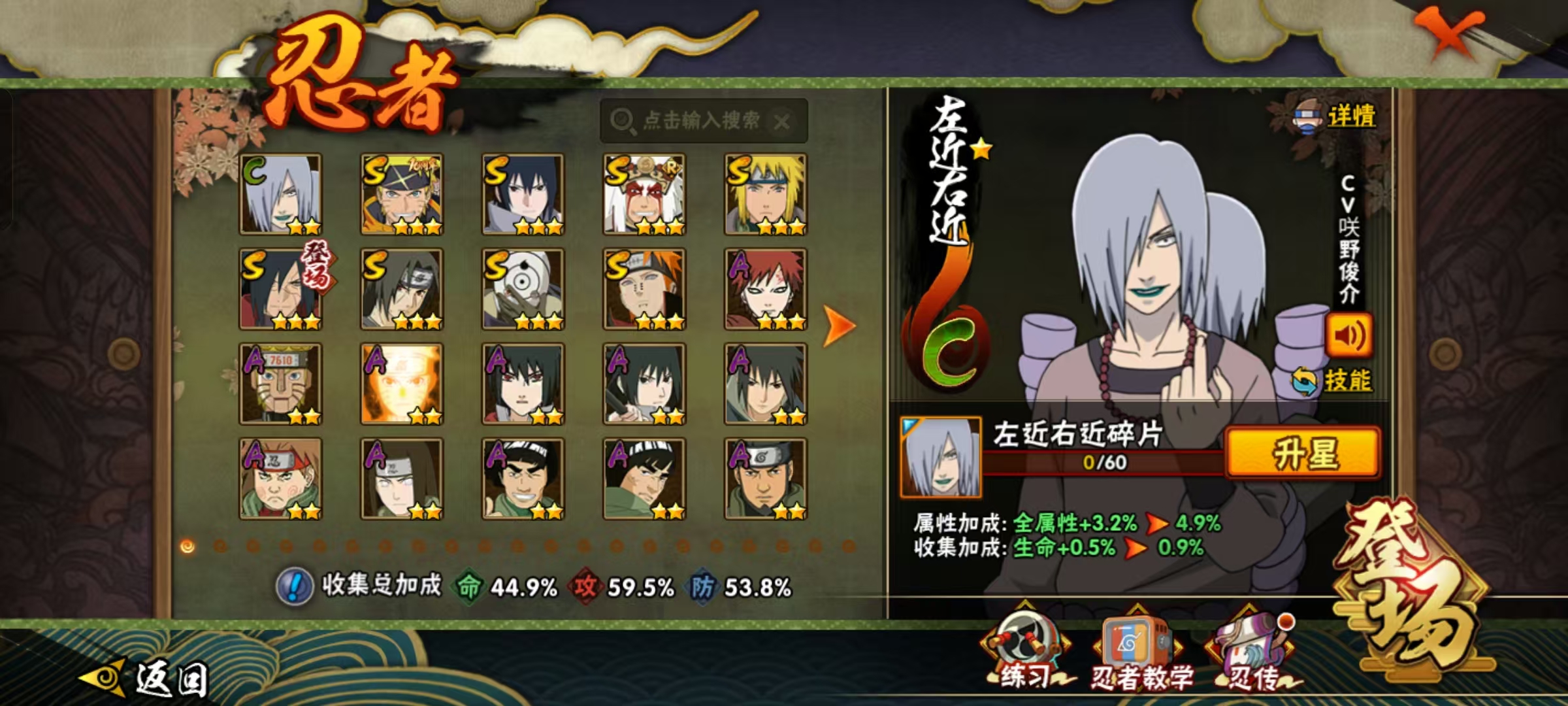 适配系统:安卓 账号类型(腾讯):QQ 战力值:530W A忍者数量:24 S级忍者数:8
