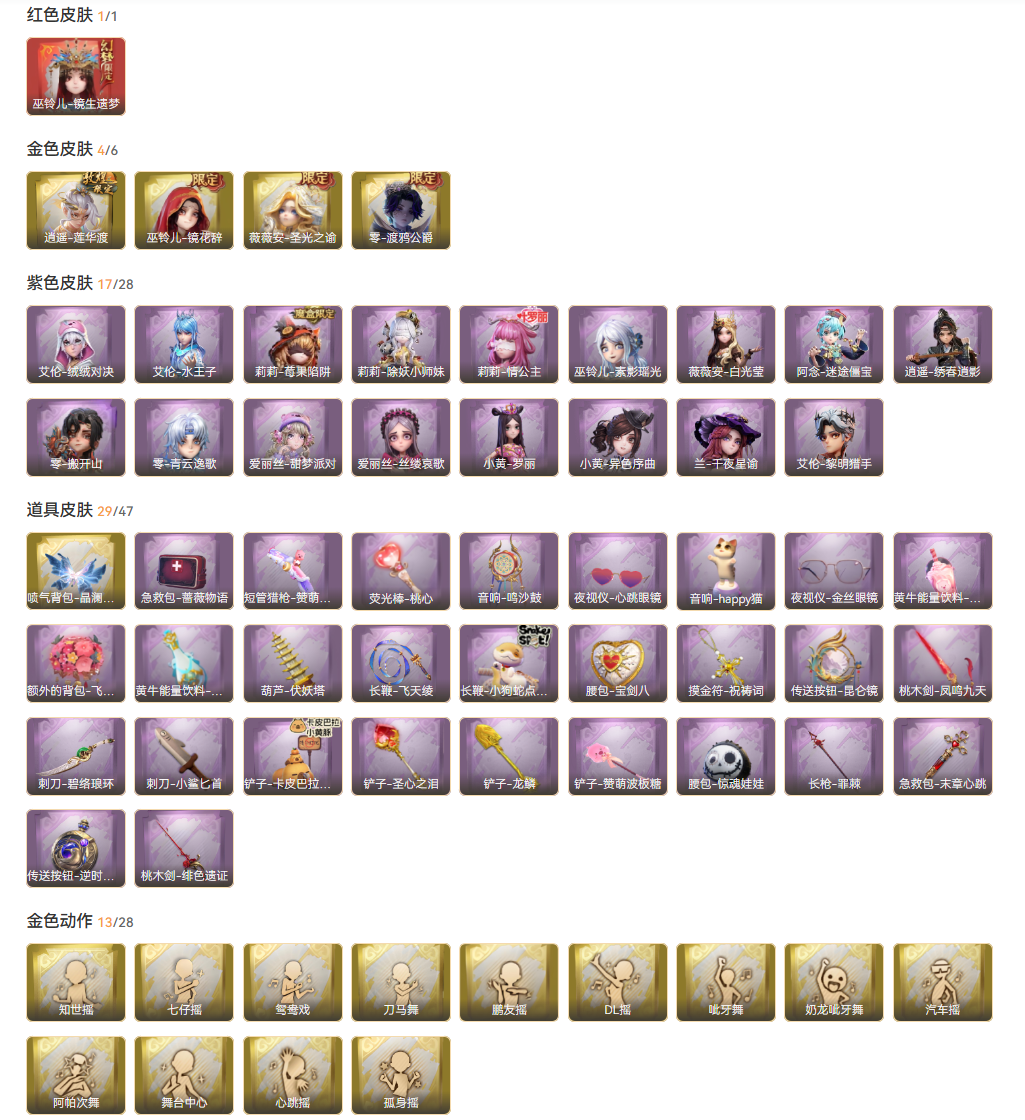 金色皮肤:4 紫色皮肤:17 是否有兔宝:是